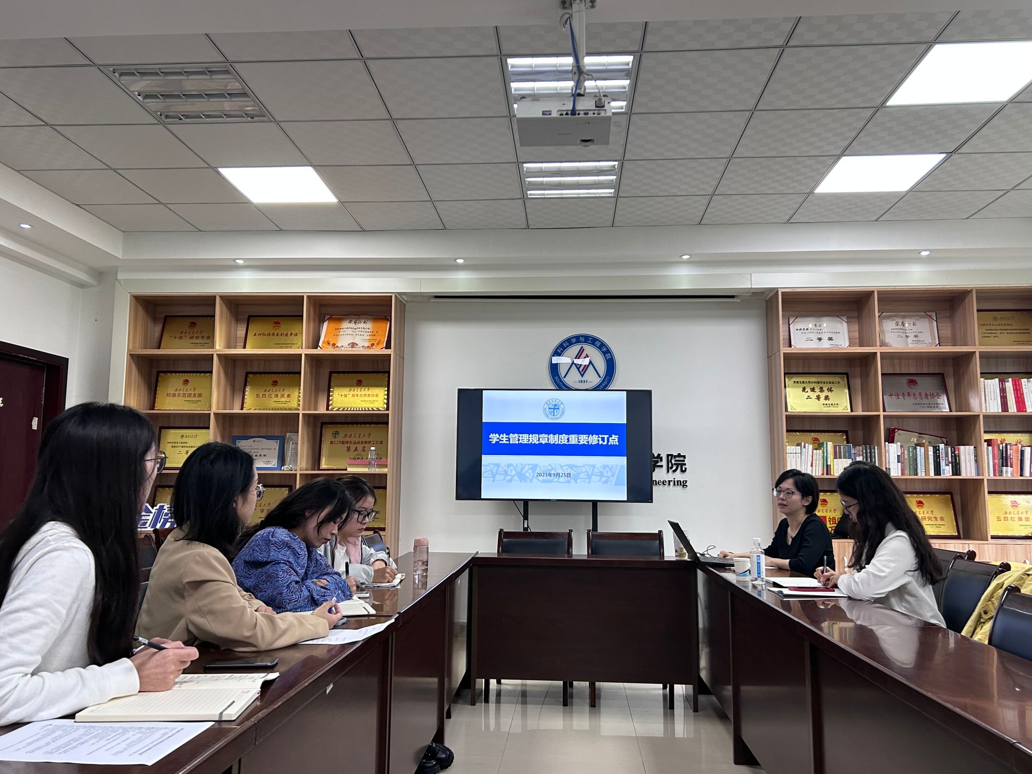 与会老师对《韦德官方网站员工纪律处分规定》、《韦德官方网站员工服务消过管理规定》、《韦德官方网站本科生荣誉称号评审管理办法》等管理办法文件的变动展开详细学习,并结合日常工作,进行探讨交流。