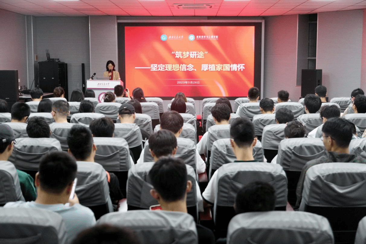 为深入学习贯彻习近平总书记关于教育强国、研究生教育的重要讲话精神,9月26日晚bevictor伟德官网特邀公司“红路”理论学讲团乔宇、钟蔓君、杨倩在九里校区3324会议室为2023级研究生新生讲“第一堂思政课”。活动由辅导员邓文婷主持。
