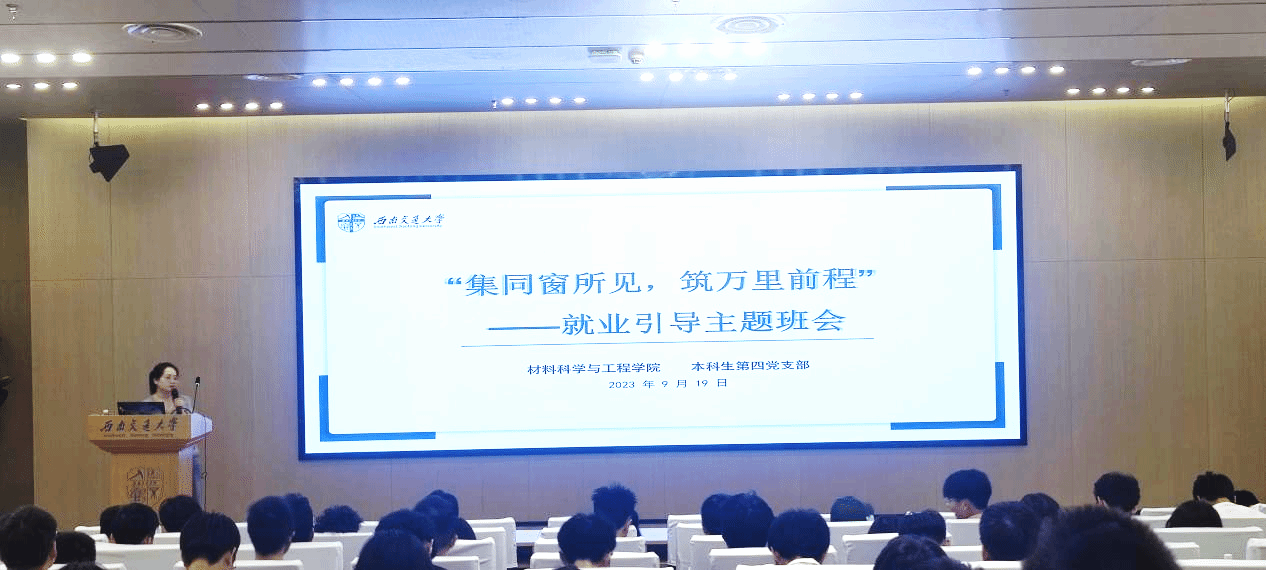为帮助同学们树立积极的就业观,由本科生第四党支部组织的“冲刺2025材子启航计划 ”—— “集同窗所见,筑万里前程” 人人讲就业主题班会正式启动,许欢老师为同学们介绍了总体安排和要求。该活动遵循“党建带动就业,就业提振学风”的工作理念,抢抓大三上学期同学们尚未全面开始备考且秋招正如火如荼进行这个黄金“天窗”,让全体同学利用闲暇时间深入招聘会现场,提前了解就业形势,并在班会上人人做分享。许欢建议同学们摆正择业观,既要志存高远,又要脚踏实地。