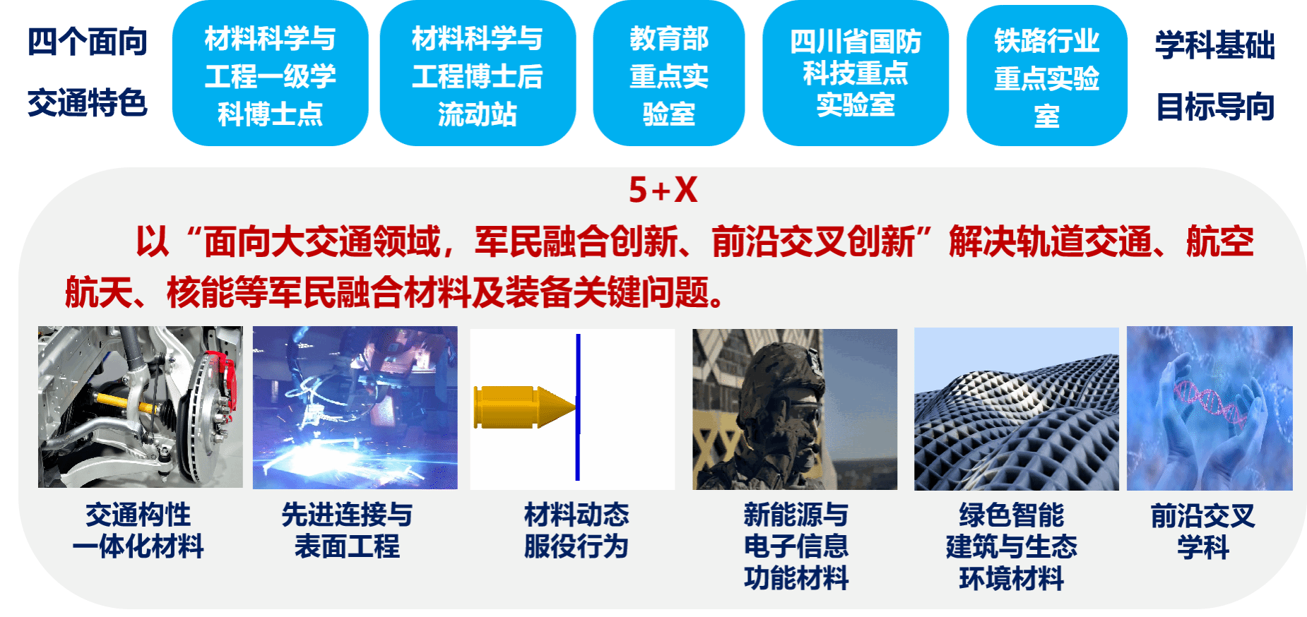 1. 学科整体实力强,轨道交通特色突出。韦德官方网站是我国轨道交通人才培养与科学研究发源地,材料学科聚焦于国家“交通强国”重大战略,致力于轨道交通材料国产化升级创新,形成了从轨道交通材料设计理论与方法、先进成型制备、先进焊接与连接、全生命周期服役安全可靠性评价的理论、技术研究体系,全面支撑了国家轨道交通材料自主自强,引领了未来轨道交通发展方向,建设形成了以轨道交通材料为特色的人才培养和科技创新基地。ESI学科排名稳步提升,晋位到全球第190位(截止2024年1月),居全球前1.39‰。