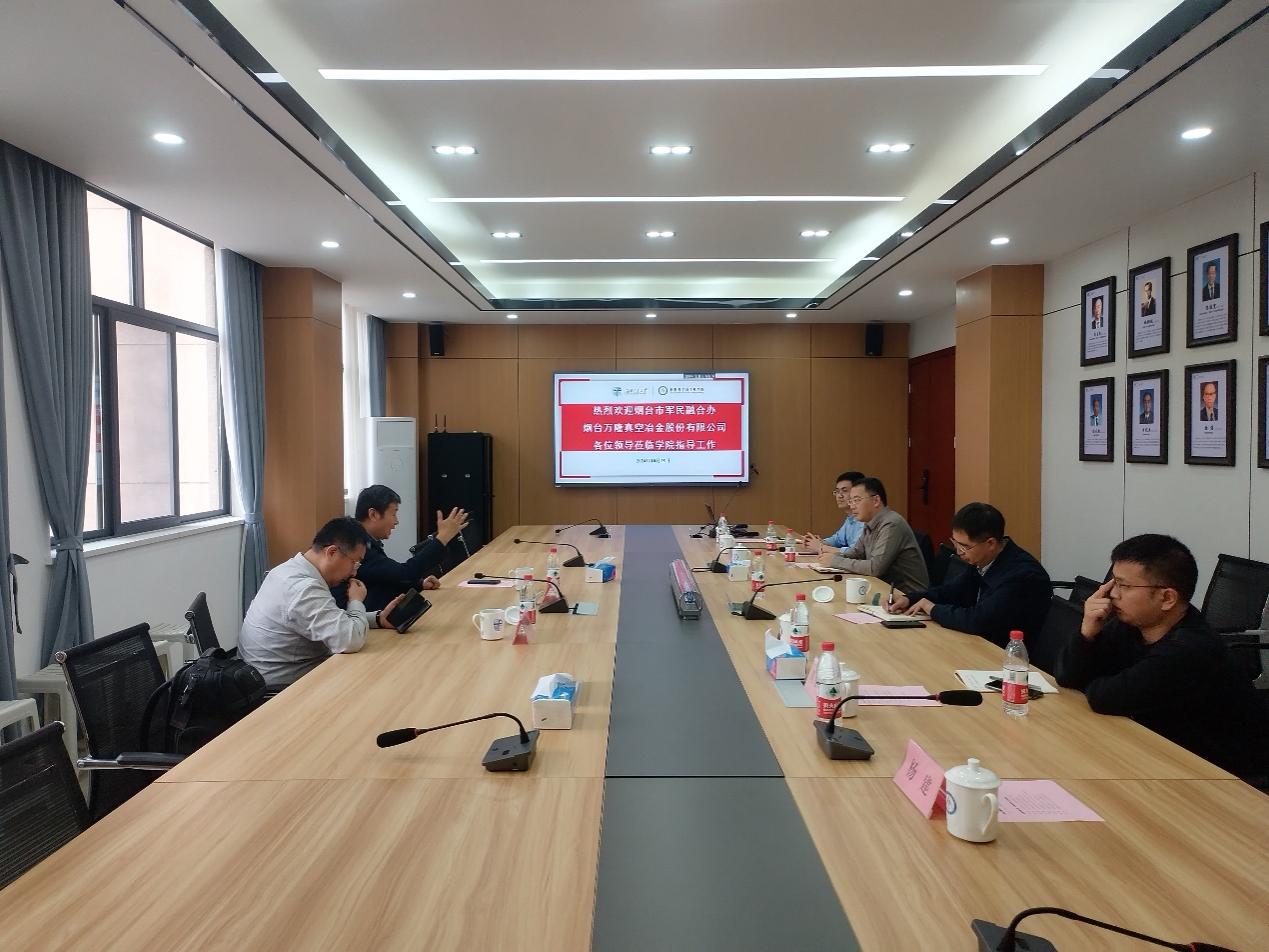 公司党委书记张占军致欢迎辞,对烟台市委军民融合办主任白志诚一行的到来表示热烈欢迎。蒋小松简要介绍公司的基本情况和近年来在教学、科研和团队建设方面取得的成绩。烟台市委军民融合办主任白志诚围绕军民融合发展形势及其相关举措进行详细说明。