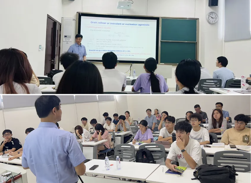 上午9:50-11:30,张明星教授在X30604为材料(茅班)2023-01班员工讲授专题课程,课程主题为“铸造金属晶粒细化理论进展”(Advance in Grain Refinement Theories for Cast Metals)。张教授结合自身研究,深入浅出地讲解了晶粒细化技术的最新理论及其工业应用。bevictor伟德官网领导老师,以及承担材料科学与工程专业(中外合作办学)课程的授课老师到场观摩。课后,师生与张教授就课程内容展开深入交流,并就材料科学与工程专业中外教学与科研进行探讨,现场学术氛围浓厚。