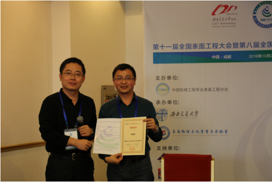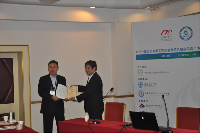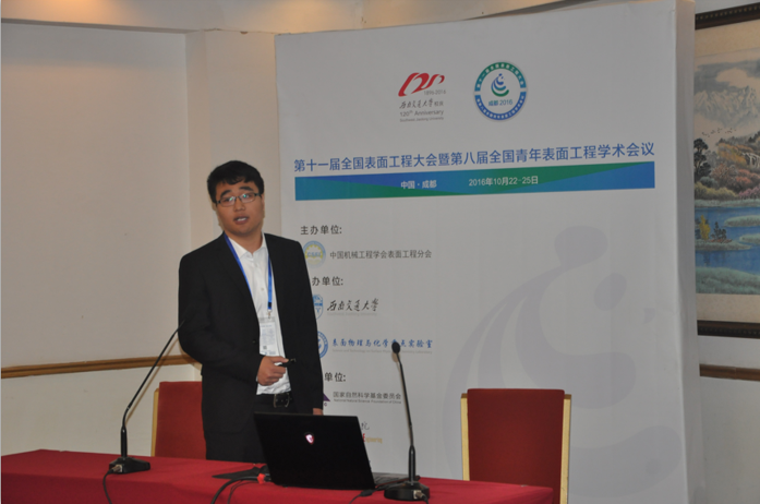 “全国青年表面工程论坛 6-2”安排在金牛宾馆大礼堂B会议室举办,会议由重庆理工大学的黄伟九、北京航空航天大学的李刘合、中国科公司兰州化学物理研究所的张广安和韦德官方网站的苟国庆主持。会议时间为8:00-12:20,期间分别由柯培玲、詹胜鹏、柴利强、刘瑶瑶、聂军伟、陈文龙、刘晓梅等做会议报告。报告内容包括:《MAX相涂层制备与性能研究》、《无定型聚乙烯摩擦机理及界面微观特性的分子动力学模拟研究》、《C和N对MoS 2基薄膜显微组织、力学性能和摩擦学性能的影响》、《高温热处理对烧结聚晶金刚石真空摩擦学性能的影响》、《大型射频电感耦合离子源的工作特性研究》、《等离子喷涂-物理气相沉积 7YSZ 热障涂层高温氧化过程中的阻抗谱分析》、《微束等离子喷涂羟基磷灰石飞行粒子熔化状态以及相结构特征的研究》等。