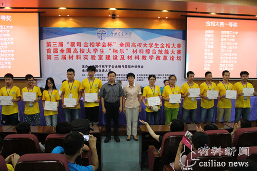 随后,出席闭幕式的各位领导为获得第三届“蔡司·金相学会杯”全国高校老员工金相大赛特别奖、一等奖的选手以及获得首届全国高校老员工“标乐”材料综合技能大赛特等奖、一等奖的选手颁奖,并合影留念。