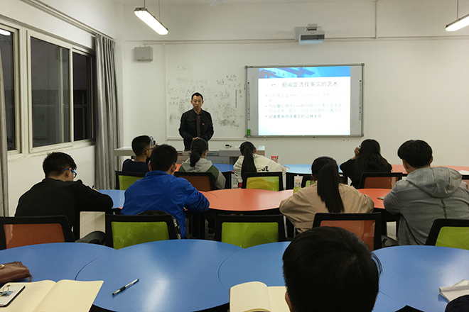 2017年10月25日晚18:30,传媒素质训练营第一课在X2121开讲,参加本次培训会的有党委宣传部宣传科科长阮琦老师,员工工作组副组长、团委书记黄德明老师,17级辅导员、新闻中心指导老师魏久林以老师及bevictor伟德官网各个员工组织的宣传骨干。培训会由黄德明老师主持,阮琦老师主讲。此次培训围绕着新闻记者需要注意的六个关键词(选择、采访、写作、标题、照片、积累)展开,并指出新闻采写、摄影过程中出现的常见问题。