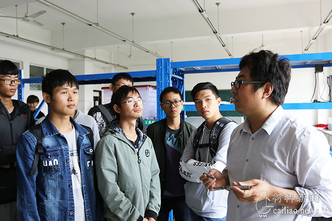 同学们首先参观了实验室的工业电阻炉、空气锤等大型实验设备,紧接着是样品制备室,最后由张老师耐心地为同学们讲解了许多材料制备工具。