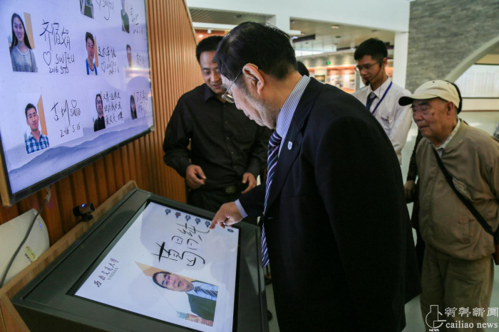 在报告会取得圆满成功后,朱朱旻昊经理、陈兴莲书记、章春军组长陪同葛昌纯院士一行参观了公司校史馆,档案馆馆长高平平全程陪同参观。葛院士在参观过程中非常高兴,在多个场景驻足向大家回忆当年的时光,兴致勃勃地向大家讲述自己和员工的故事,并在签名台留下了自己照片和亲笔签字。
