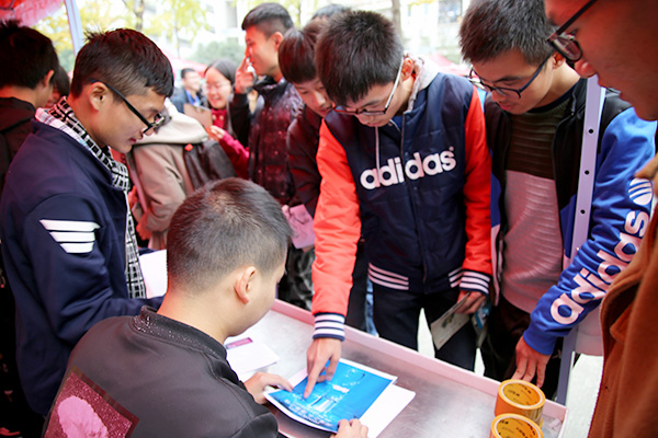 在那温馨的心愿屋里,女生们嘴角泛着微笑写下自己最甜美的心愿,挂在心愿墙上等着男生们来实现;男生们也兴致勃勃地在其中穿插,试图寻找称心的心愿。更令女生和男生们欣喜的是女生写完心愿还可以领到热乎乎的奶茶和甜美的小蛋糕,而为女生领下心愿的男生们也可以去抽奖。在这小小的一方天地里,每个都人化身为自己的幸运之神,花下月老。