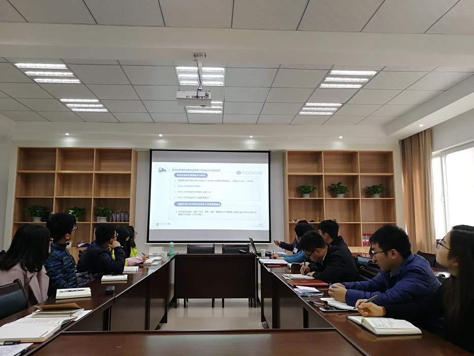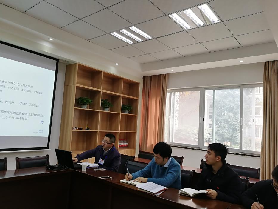 首先,胡安辉老师强调了辅导员工作应紧紧围绕“立德树人”的主题,将思想政治工作贯穿到公司产品全过程,根据研究生日常思想政治教育及管理工作相关的文件和政策,切实开展工作,扎实基础。