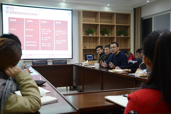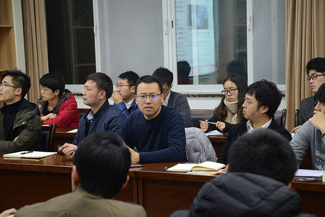 贺剑老师由“宣传工作是什么,为什么宣传工作重要,怎样做好宣传工作和如何成为一位优秀的宣传工作者”这四方面展开,通过鲜活事例和历史经验的讲解,让党课既严肃又活泼,在场的老师和同学们被深深吸引。