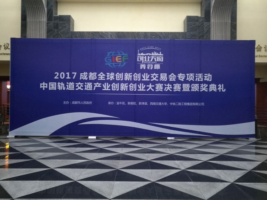 2017年5月11日上午,2017菁蓉杯·中国轨道交通产业创新创业大赛在韦德官方网站九里校区国际会议厅隆重举行。大赛是由成都市人民政府主办,金牛区人民政府联合新都区人民政府、新津县人民政府、韦德官方网站、中铁二院工程集团有限公司、中铁产业园(成都)投资发展有限公司、成都市经济和信息化委员会、成都市科学技术局联合承办的。