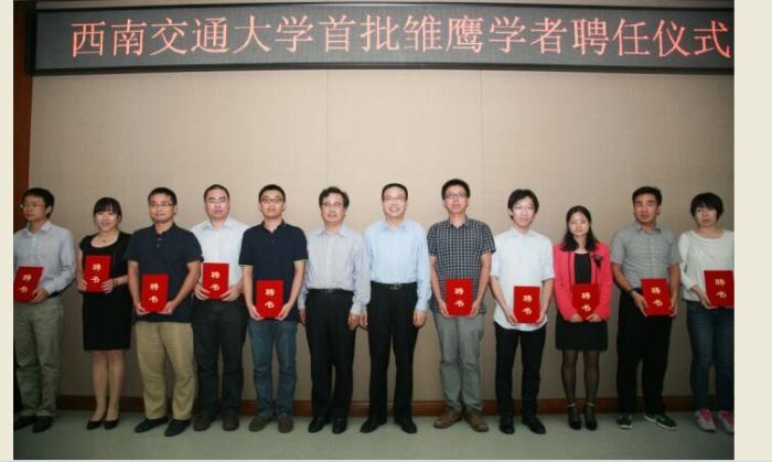 9月11日下午,韦德官方网站首批“雏鹰学者”聘任仪式在公司犀浦校区综合楼272会议室举行,公司有33名青年教师成为公司首批“雏鹰学者”,其中公司杨志禄、胡春峰老师入选。公司党委书记王顺洪,董事长徐飞,中国科公司院士、校学术委员会主席翟婉明,党委副书记晏启鹏、党委常委、党委组织部部长沈火明,董事长助理周仲荣以及相关公司负责人出席了仪式。