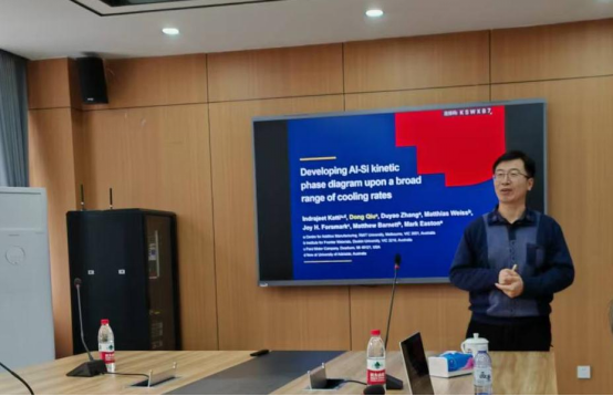 2025年1月6日下午2:30,澳大利亚皇家墨尔本理工大学邱冬博士应邀在在九里校区3号楼3310会议室为公司师生带来题为《对高速冷却条件下近共晶合金动力学相图的发展与完善》的精彩学术讲座,讲座由刘艳副经理主持。