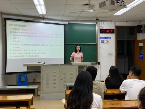 8位竞选人从工作方面、学习方面以及对党建中心的展望方面进行了详细的阐述。每个人对于自己的义务都有很清晰的认识,抱着把党务工作越做越好的态度,想让自己继续留在为师生服务的岗位上发光发热。为了更好的检验竞选人对自己的工作的理解,会议采用了随机抽问题并从多个维度阐释自己的看法的形式,不仅让竞选人有了更深刻的理解,还给其他人带来了思考,取得良好成效。