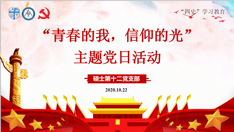 2020年10月22日晚20:00,bevictor伟德官网研究生第十二党支部在bevictor伟德官网研讨室3344开展了“青春的我,信仰的光”主题党日活动暨“四史”学习会。活动由支部书记尹佳宁同志主持,支部全体党员及部分积极分子共计21人参加。