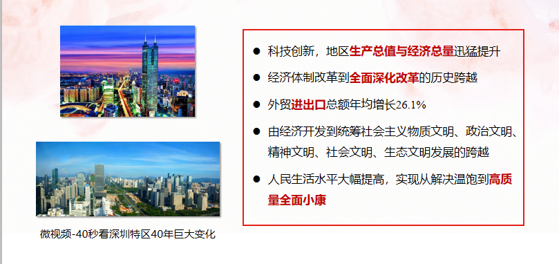尹佳宁同志从习近平总书记在深圳经济特区建立四十周年庆祝大会上的讲话切入,重点向各位同志讲解了改革开放史。她从经济特区建设中几个重要的时间节点入手,通过图片和微视频的方式向各位同志直观地展示了经济特区在四十年的发展中所取得的瞩目成就,并介绍了深圳发展过程当中我党积累的宝贵经验和一下阶段求发展的基本做法,即坚定不移贯彻新发展理念、与时俱进全面深化改革、锐意开拓全面扩大开放、创新思路推动城市治理体系和治理能力现代化、真抓实干践行以人民为中心的发展思想、积极作为深入推进粤港澳大湾区建设。