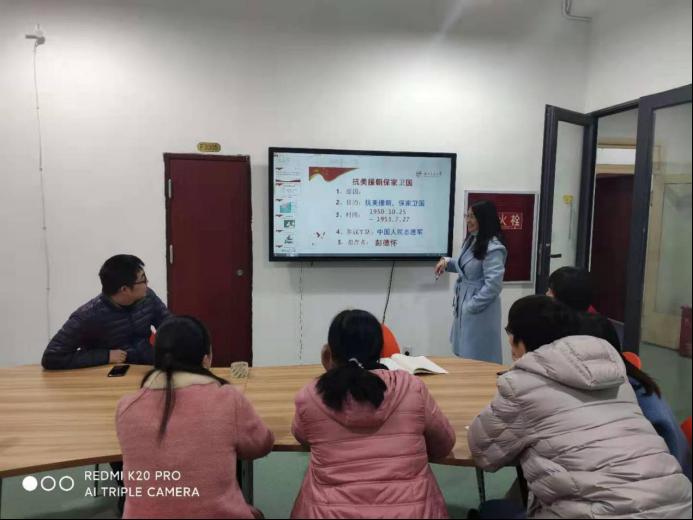 为纪念中国人民志愿军抗美援朝出国作战70周年,铭记历史,传承爱国精神,11月23日下午14时,韦德官方网站材料科学与工程公司研究生第九党支部在支部书记严翼飞老师的带领下开展了“继承和弘扬伟大抗美援朝精神,为实现中华民族伟大复兴而奋斗”主题组织生活。本次主题活动旨在弘扬爱国主义为核心的伟大民族精神,激发党员的爱国热情,丰富党员的组织活动。