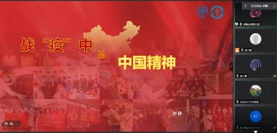 最后,郭静同志也分享了关于抗疫过程中的中国精神,从疫情的来势汹汹,国内大范围的停工停产到全国同舟共济、共克时艰最后到武汉复苏、春暖花开。这充分体现了的抗疫下的中国力量—一方有难,八方支援、最美天使,无私奉献、全球战疫,大国担当……这场战疫,我们从全方位的极限压力中看到了团结一致上下齐心的文化优势,看到了中国共产党以人民为中心、将人民群众生命安全和身体健康放到第一位的价值情怀,看到了一方有难、八方支援的中华民族伟大精神。