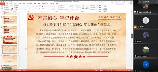 大家在紧张备考的同时参加了本次党日活动,首先,由艾建平同志分享了关于学习黄文秀同志精神的提倡,黄文秀同志在在脱贫攻坚第一线倾情投入、奉献自我,用美好青春诠释了共产党员的初心使命,谱写了新时达的青春之歌。习近平总书记对黄文秀同志先进事迹作出重要指示,我们要学习黄文秀同志不忘初心、牢记使命、勇于担当、甘于奉献的精神,努力在新时代的长征之路做出新的更大贡献。
