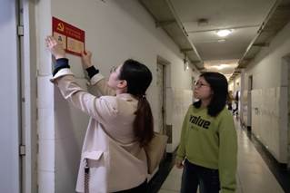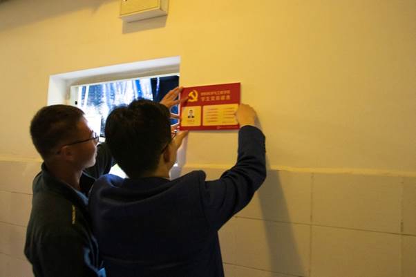 辅导员老师许欢、王誉静为员工党员宿舍挂牌
