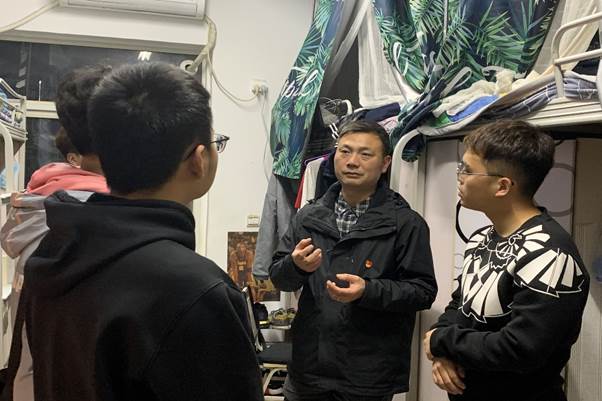 章春军副书记与同学们在宿舍交流