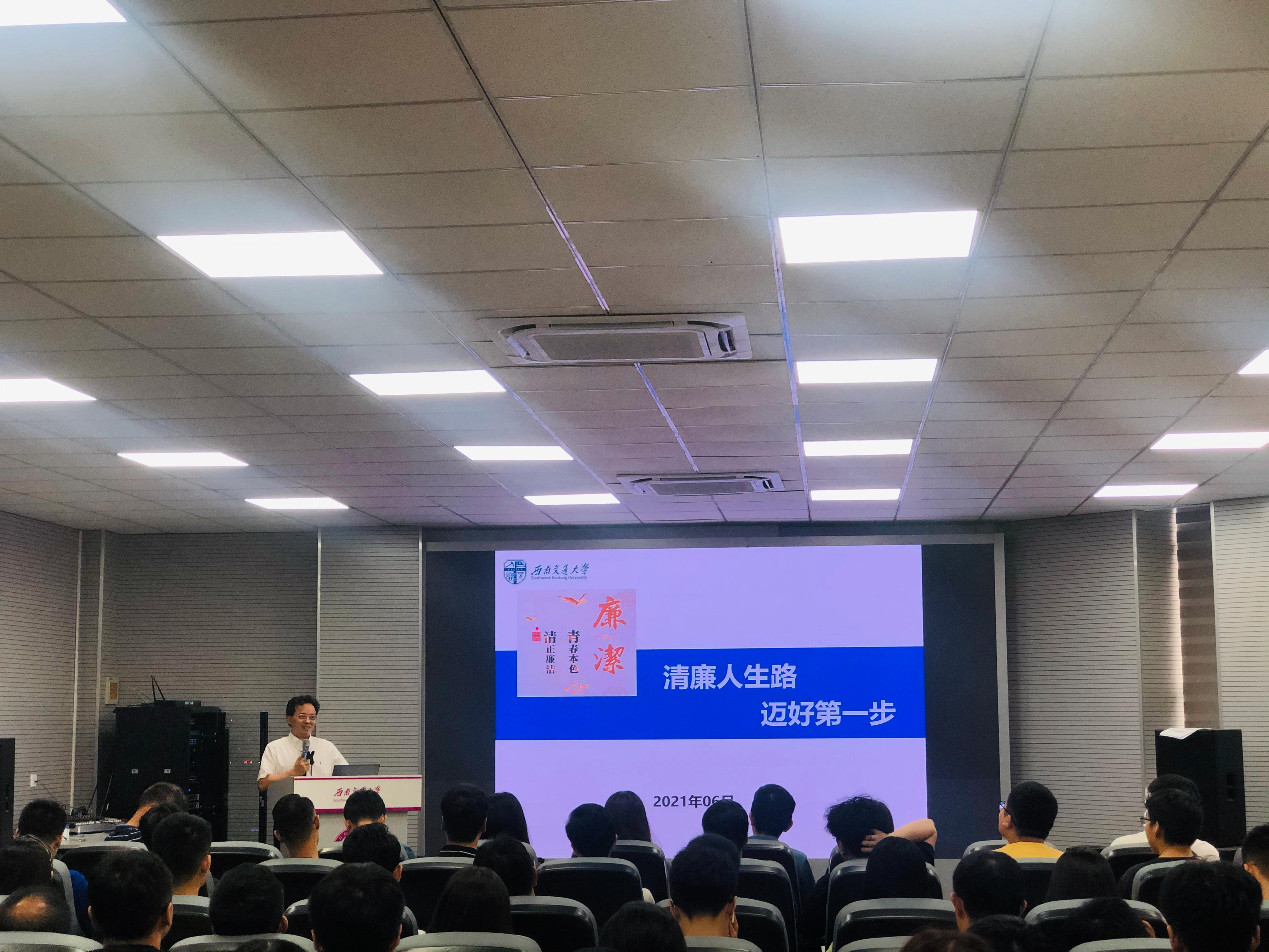 在讲座中,张学龙通过对大量典型警示案例的解读,分享自己的人生体会,提醒同学们戒除侥幸心理,不要为了金钱和权力触碰底线,提醒大家算好算清“政治、经济、名誉、亲情、自由”这五笔“人生账”,警示同学们“珍惜信任、珍惜声誉、珍惜当下,不要让自己的一切毁于一旦”,提醒同学们要尊重法律、淡泊宁静、坚定信仰,强调共产主义信仰是最崇高、最美好的信仰。他还为大家推荐了《平凡的世界》,希望同学们热爱生活、保持警惕,在平凡的世界成就不平凡的自己,在即将迈向新征途之际重视扣好人生第一颗扣子,走好清廉的人生路。