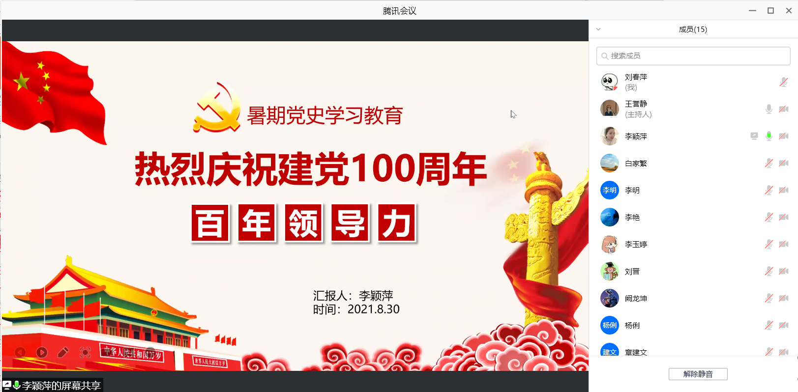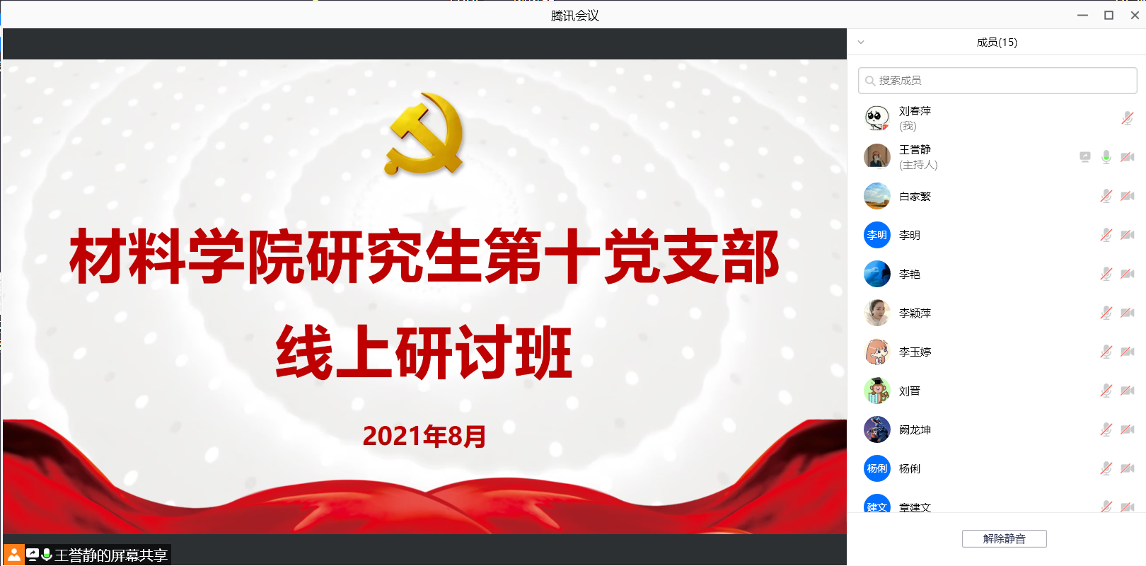 2021年8月30日晚,bevictor伟德官网研究生第十党支部利用腾讯会议线上平台顺利开展暑期线上研讨活动。本次活动由党支部书记王誉静同志主持。