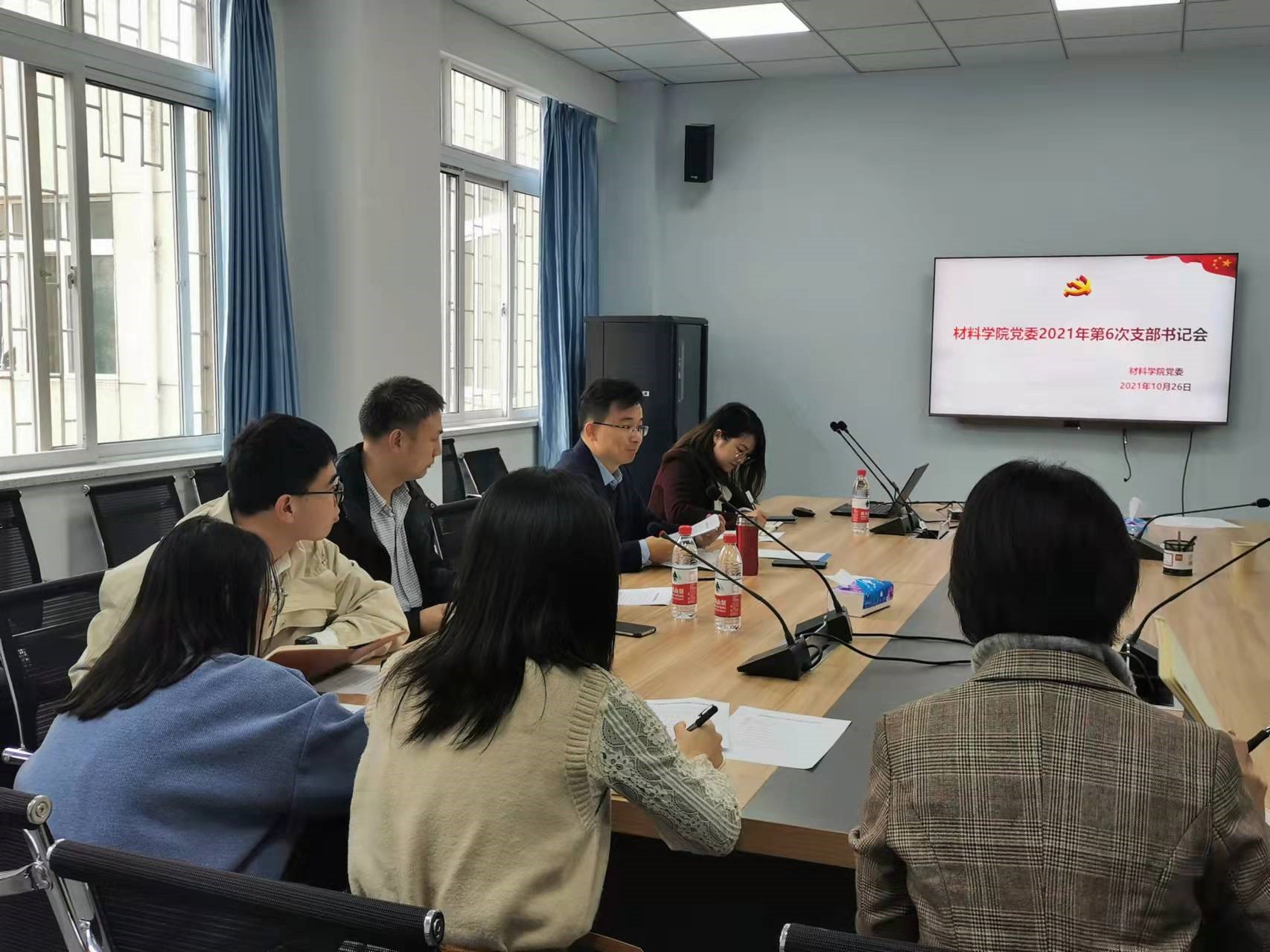2021年10月26日,材料科学与工程公司党委第6次支部书记会议在九里校区3310会议室召开,党委书记陈勇、党委副书记章春军和全体支部书记参加会议。会议由陈勇主持。