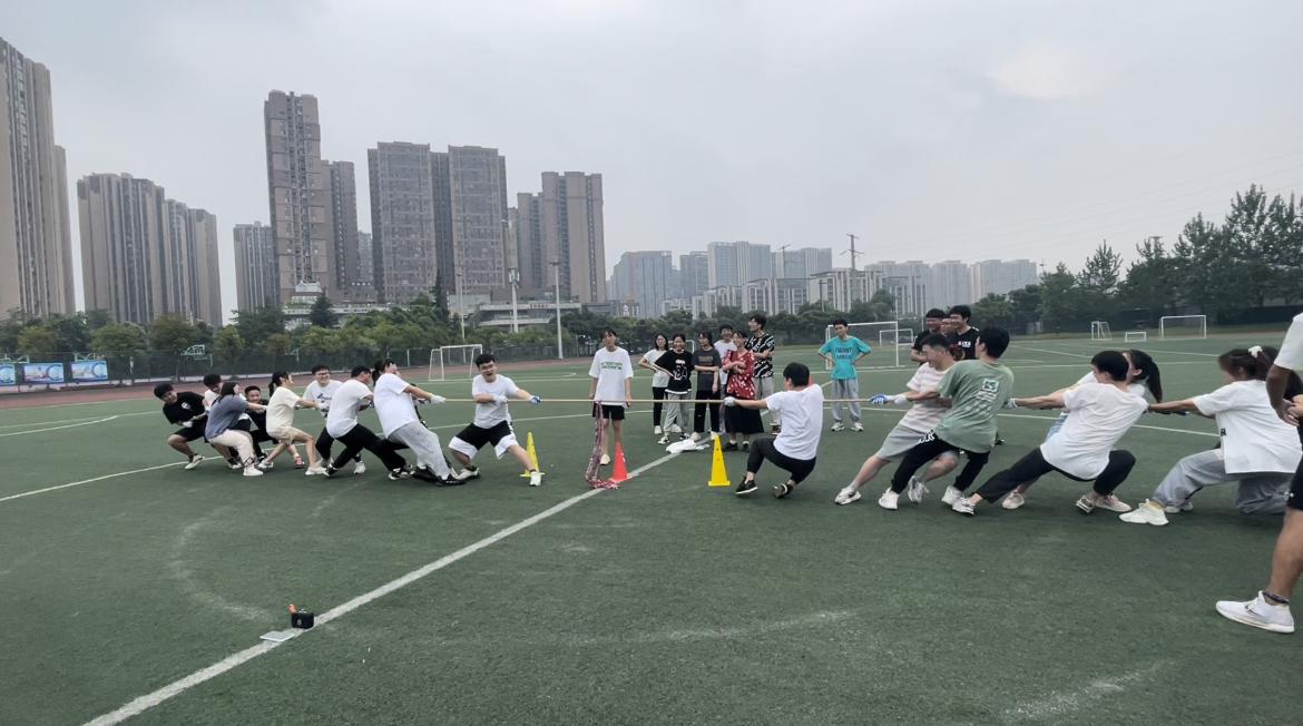 第六个项目是拔河,各组成员在拔河前认真分析,设计战术,最终在比试过程中都发挥出了自身的水平。