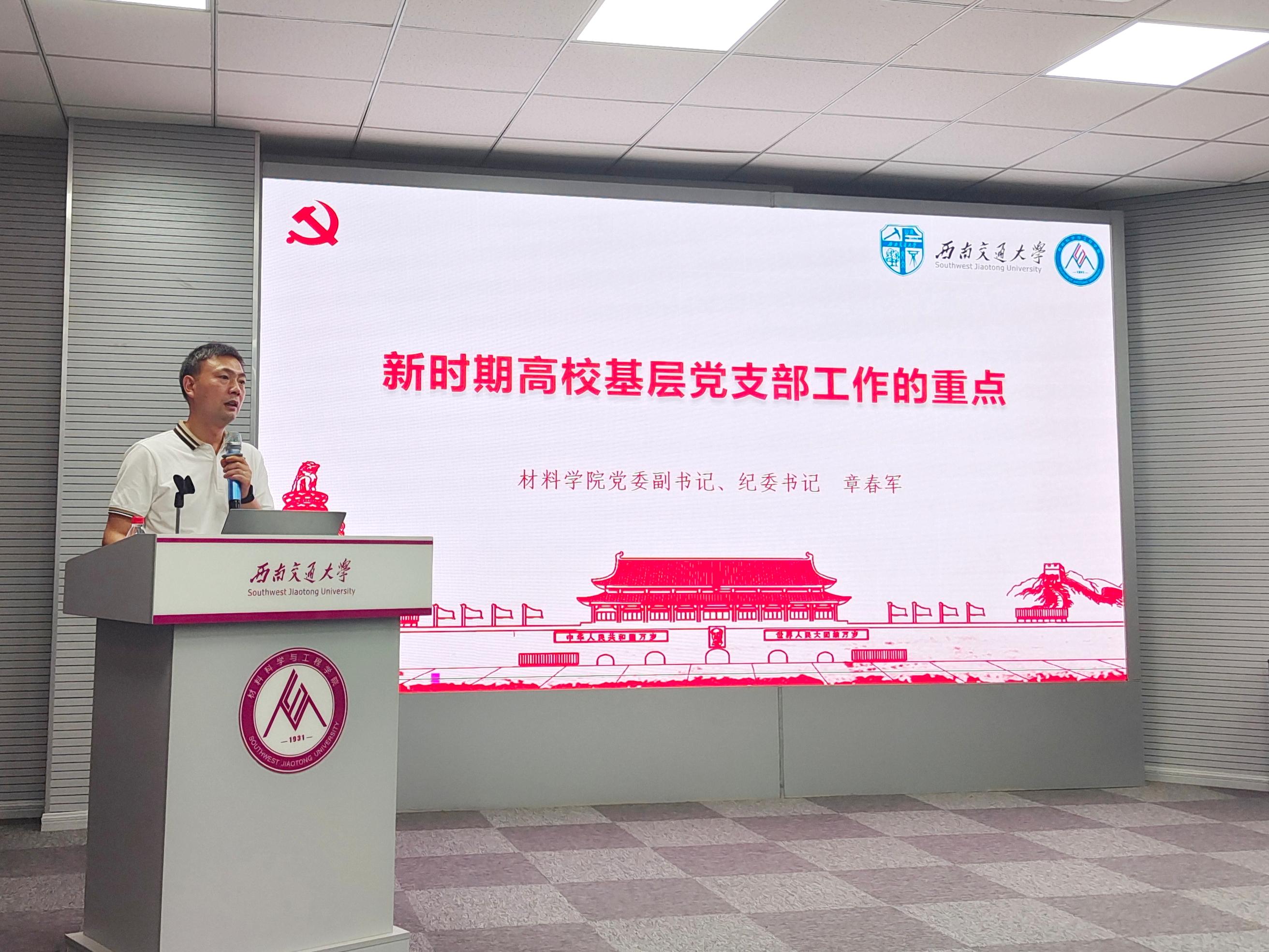 68日下午3:10,章春军以党建工作问题为导向,指出了党支部存在影响力不足、作用发挥不明显等问题,从普遍性、特殊性、大形势、入口关四个方面提出了解决路径,讲述了“新时期高校基层党支部工作重点”主题党课。他为大家梳理了党支部的工作地位、工作职责、工作原则和基本任务等;提出高公司党支部工作需要紧密结合人才培养和思政工作,落实立德树人的根本任务;强调了政治纪律、组织纪律相关要求,提出严肃党内政治生活的重要性,要求各支部要高度重视意识形态工作;指出一定要把好党员发展的“入口关”,正确履行入党程序。