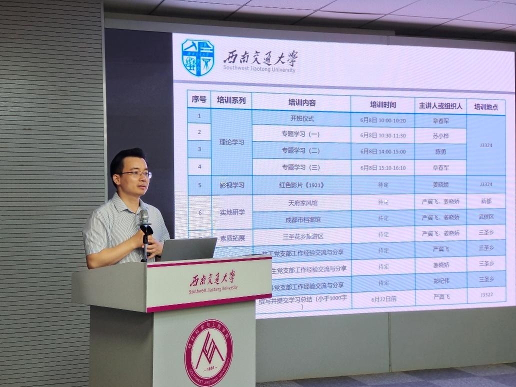 章春军主持开班仪式,介绍本次培训班主要包括理论学习、影视学习、实地研学、集中研讨学习和素质拓展五个部分,强调支部书记们要认真参与培训,有效解决好实际工作痛点、难点,争做一名合格的党支部书记。随后陈勇讲话指出,本次培训活动内容充实、全方面开展学习,希望大家要高质量、高效率完成培训,增进工作交流,重视党的理论学习,强化学习意识,坚持深入学习,创造“想干、肯干、会干”的工作氛围,增强党支部工作活力,并宣布公司党支部书记培训班正式开班。