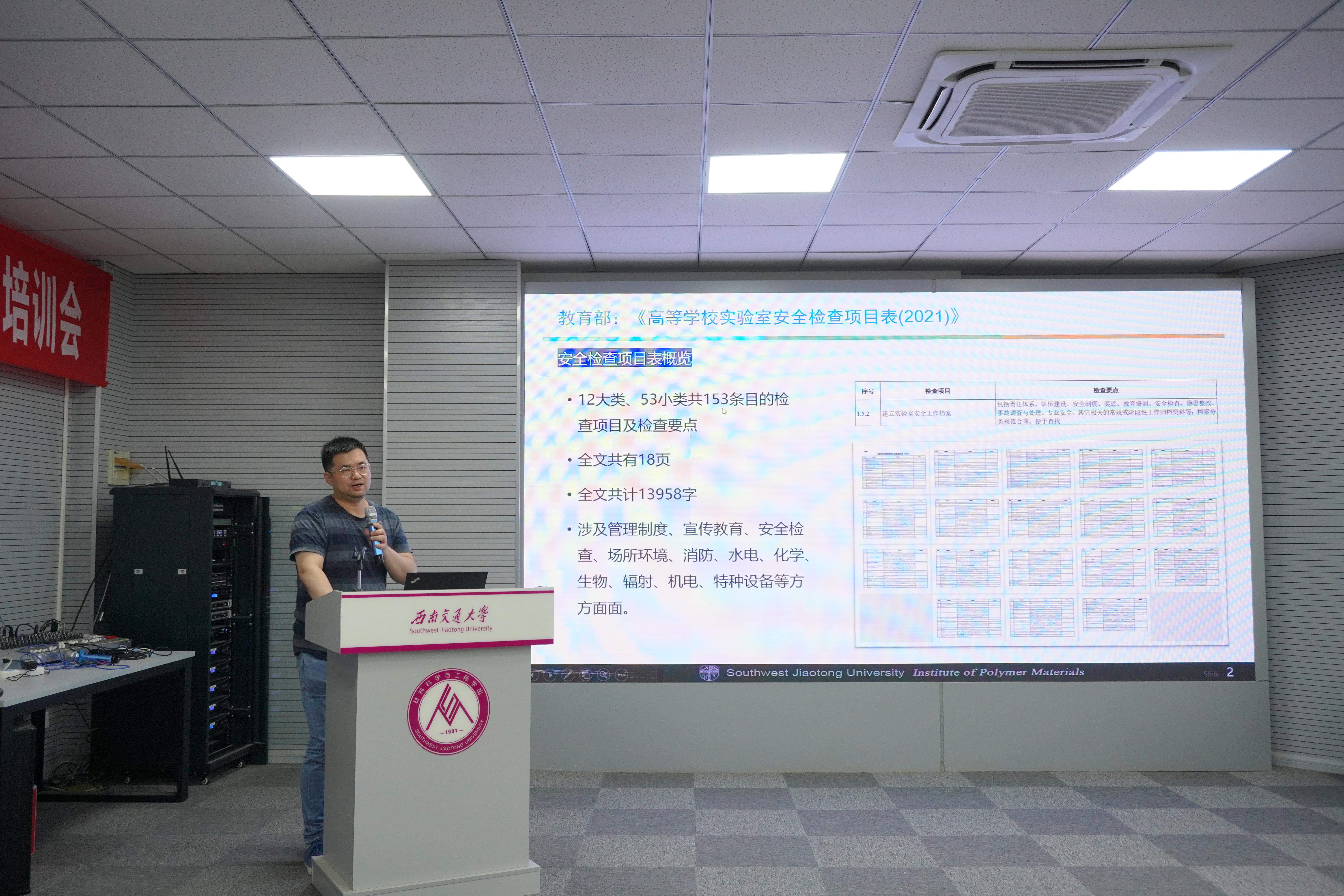 启动仪式结束后,韦炜老师对员工巡查队开展了安全巡查工作的培训,严格对照教育部制定的《高校实验室安全检查项目表(2022年)》的各项条款要求,并依据具体案例,从消防安全、化学安全、用电安全等多个方面讲解,详细介绍了检查工作的具体内容,提升巡查队员的安全意识和工作针对性认识。