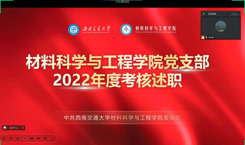 2022年12月23日上午,材料科学与工程公司党委结合当前实际情况,在线上平台召开了第7次党支部(扩大)会议暨2022年度党支部书记述职大会。公司党委书记陈勇、党委副书记章春军、李涛副经理、王勇副经理、教师代表杨炜沂、员工代表敖东以及全体党支部书记出席本次会议。会议由陈勇主持。