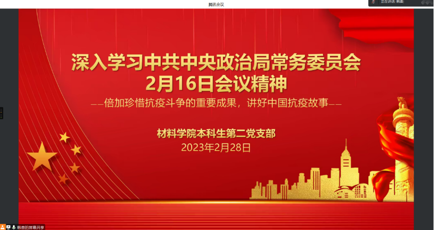 2023年2月28日晚,bevictor伟德官网本科生第二党支部通过线上组织开展了“中共中央政治局常务委员会2月16日会议精神”专题学习。会上,全体同志共同观看了此次会议精神的专题报道。