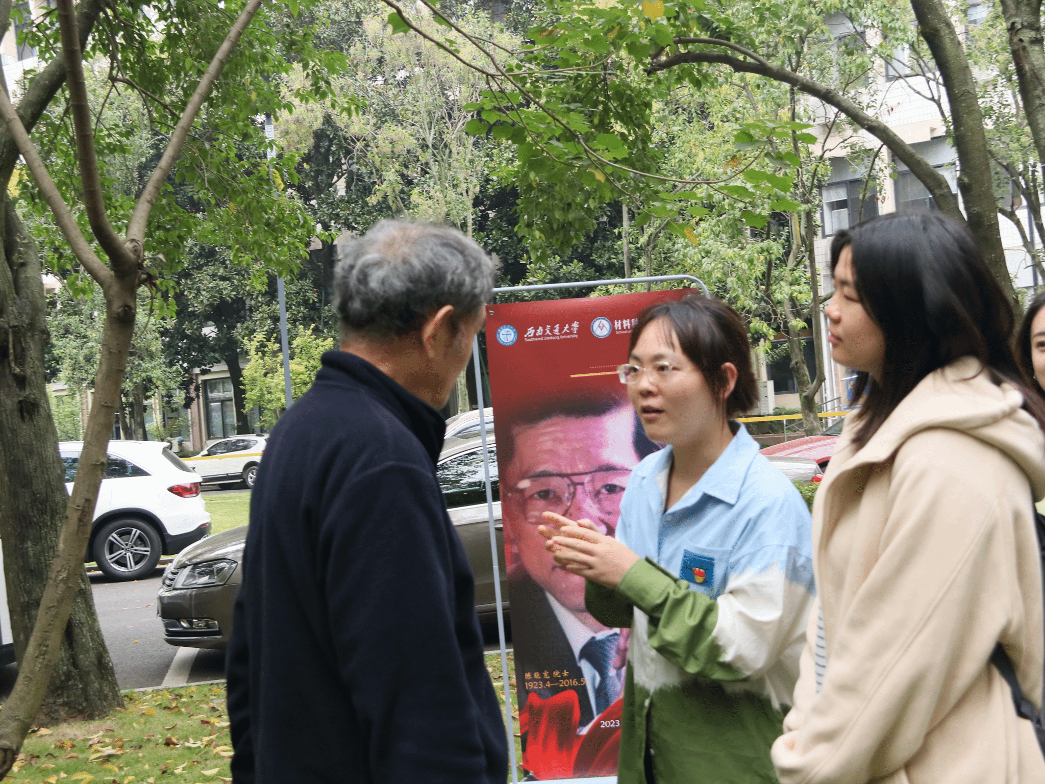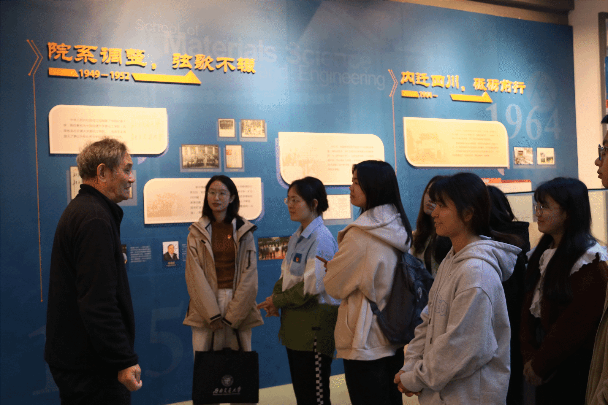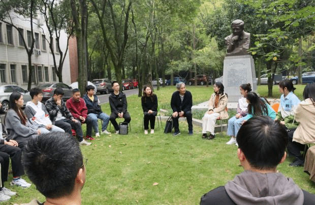 弘扬科学家精神,勇担时代使命。11月8日,在陈能宽雕塑前开展座谈会,特别邀请了校史专家、2021年度“最美交大人”梁锦唐老师主讲。梁老师从他与陈能宽先生一次难得的见面讲起,介绍了陈能宽先生的生平事迹,期间梁老师多次谈及陈能宽先生的家国情怀及无私奉献精神,勉励同学们学习优秀前辈的事迹与精神,成为甘于奉献、热于科研、忠于祖国的新时代交大人。座谈会结束后,大家一同前往院史馆思源厅,展厅记载公司各个时期的发展历程,展示了一代代材料人的奋斗与拼搏,增强新生党员对于公司的归属感与认同感,讲述了杰出员工陈能宽院士等科学家艰苦奋斗、求真学问、爱国爱校的精神,激励同学们坚持追求真理、厚植爱国情怀、增强使命担当,以更加饱满的热情投身于科研报国。