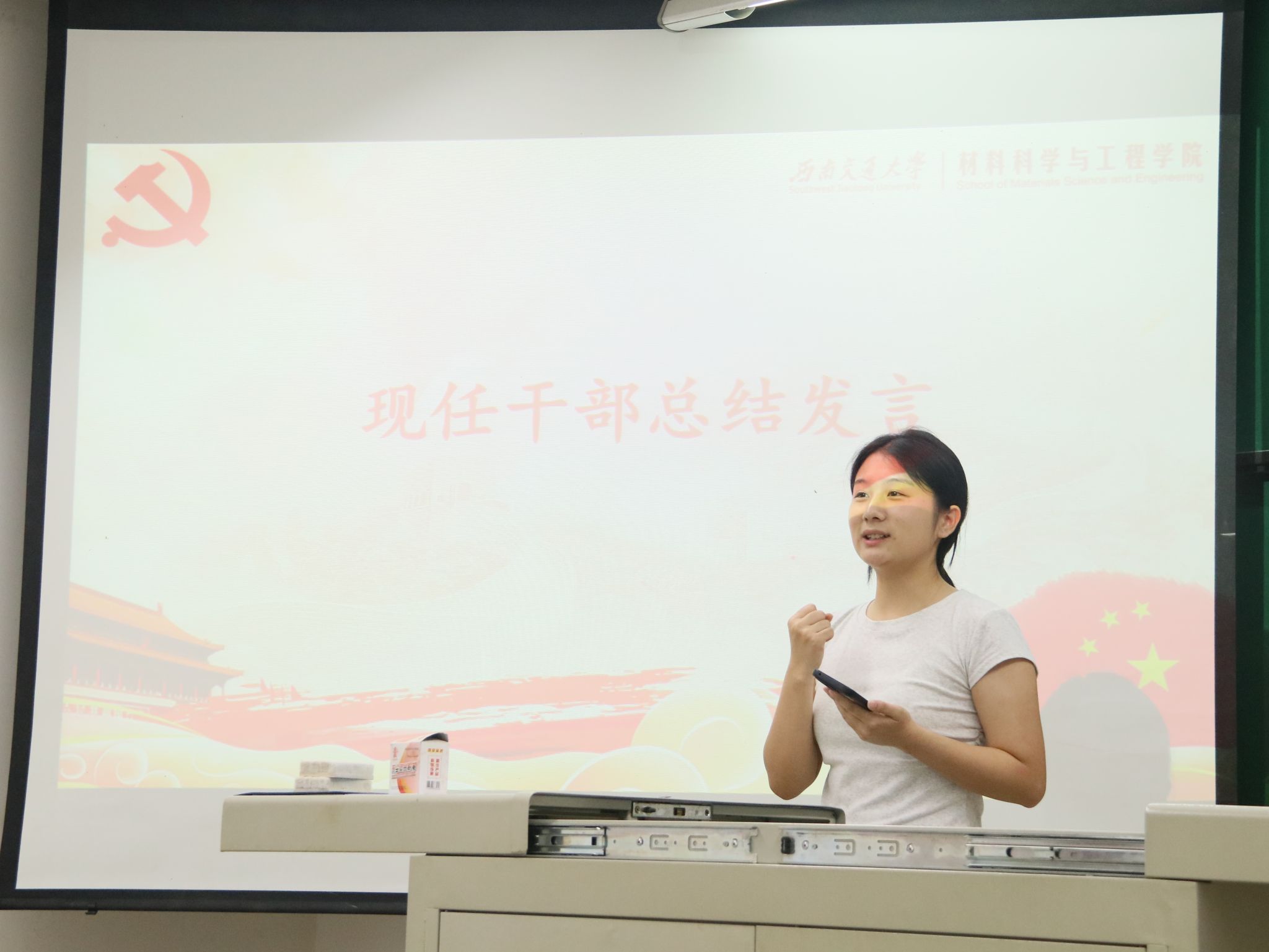 最后,邓文婷以“感谢、成长、期望”三个关键词做总结发言。她鼓励同学们在严肃工作的同时结交知心朋友,在提升业务能力的同时注重个人综合素质提升。愿同学们积极投身党建工作,以青春之我,创造青春之党建,展现新时代青年的担当与责任。