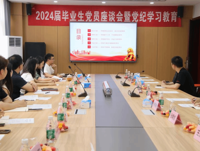 为进一步加强对毕业生党员的教育引导,强化党员意识,提升党性修养,同时为鼓励毕业生党员在即将踏上新的人生征程之际,坚定信念,勇担使命,以良好的精神风貌为祖国的现代化建设贡献力量,2024年6月11日,bevictor伟德官网于九里校区3号教学楼3310会议室开展2024届毕业生党员座谈会暨党纪学习教育主题党课。公司党委书记张占军、组织员严翼飞,辅导员代表及毕业生党员代表参加此次座谈会,会议由严翼飞主持。