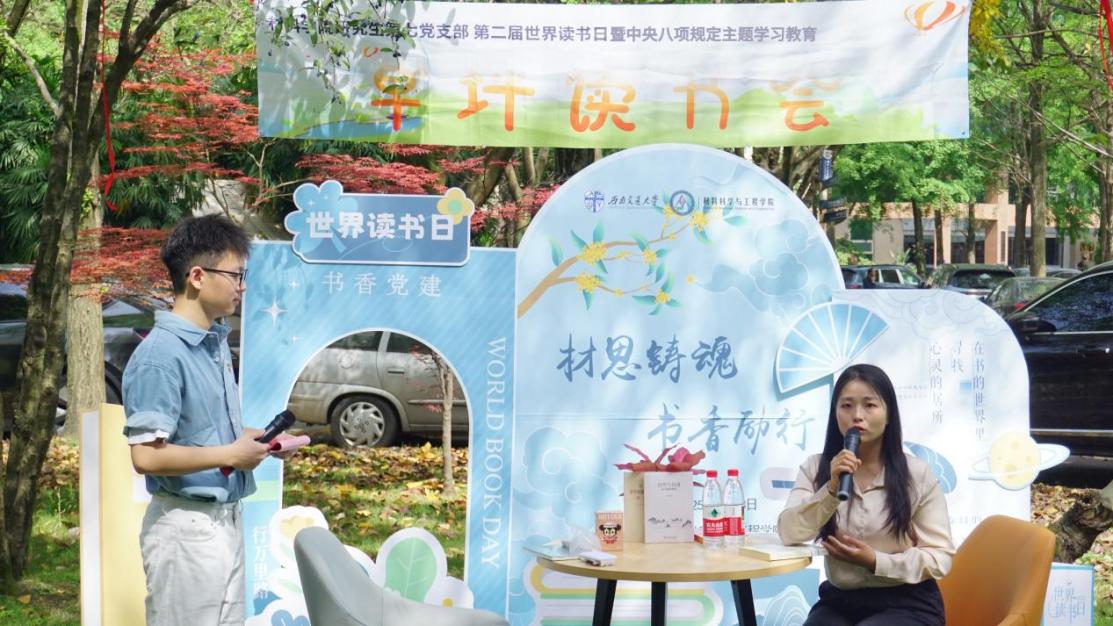 为深入贯彻落实中央八项规定精神,深化作风建设实践成果,bevictor伟德官网研究生第七党支部于2025年世界读书日之际,在九里校区三号教学楼陈能宽院士纪念雕塑草坪,开展“材思铸魂·书香励行”主题党建活动。本次活动以草坪读书会和旧书回收换礼的“双线融合”形式同时开展,传承科学家精神,感受知识传递,同时将回收书籍通过公益爱心协会捐赠给贫困地区的员工,为山区学子架设知识桥梁。