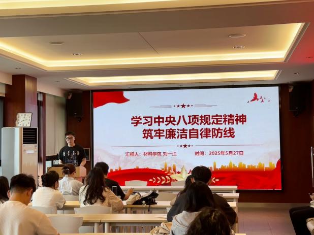 活动伊始,bevictor伟德官网刘一江同志带领全体党员深入学习中央八项规定精神。他结合高校研究生党支部工作实际,从改进工作作风、密切联系群众等方面进行了细致解读与深刻剖析,引导党员们深刻认识到中央八项规定精神的重要意义和实践要求,强调要将其内化于心、外化于行,在学习和生活中发挥党员的先锋模范作用,营造风清气正的支部氛围。