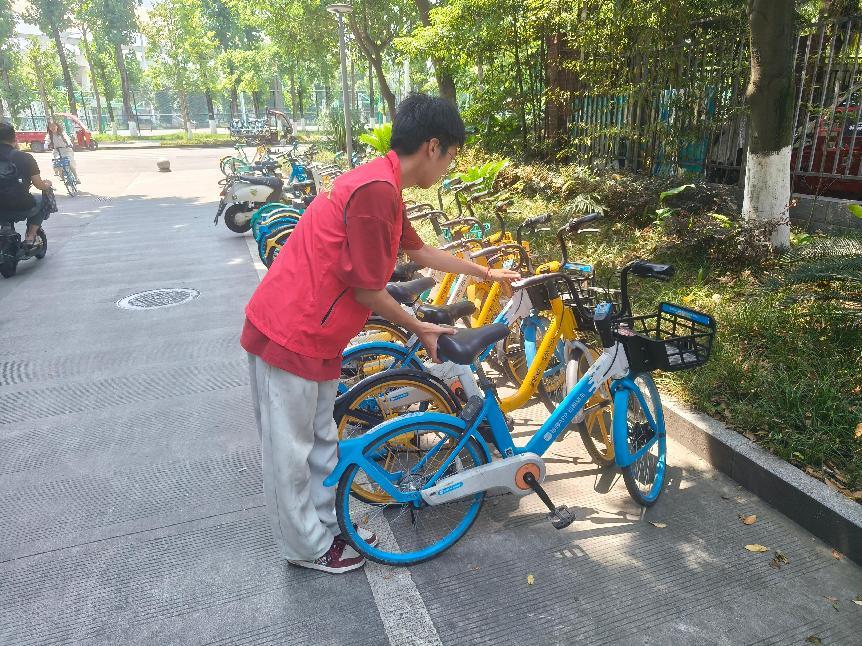 活动中,党员志愿者率先垂范,分赴校内交通路口与共享单车集中停放区。在上下课高峰时段,党员骨干手持文明通行标语喇叭、口哨指令与荧光棒引导车流人流,对横穿马路、闯红灯等行为及时劝阻;在单车停放区,党员带头推行“一摆二劝三宣传”工作法——规范摆放违规车辆、劝导师生文明停车、循环播放停车提示语音,带动非党员志愿者共同将200余辆共享单车归整至指定区域。“作为党员,我们既要做文明秩序的维护者,更要做校园文明的播种者。”参与活动的员工党员表示。