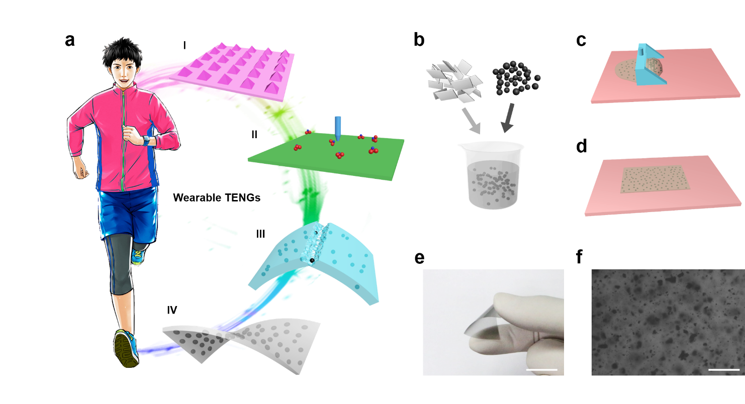 As the world marches into the era of the Internet of Things (IoT), a variety of wearable bioelectronics is on the cusp of a revolution. However, the fast developed emerging field is limited due to the shortage of widespread, wearable, and sustainable energy supply. Although triboelectric nanogenerator (TENG) promotes the development, the efficiency is still a challenge for further applications. Some existing trials for boosting output, such as surface physical modification, surface chemical modification, and ceramic particles doping, can’t be used for wearable electronics widely and lastingly, because of their drawbacks.