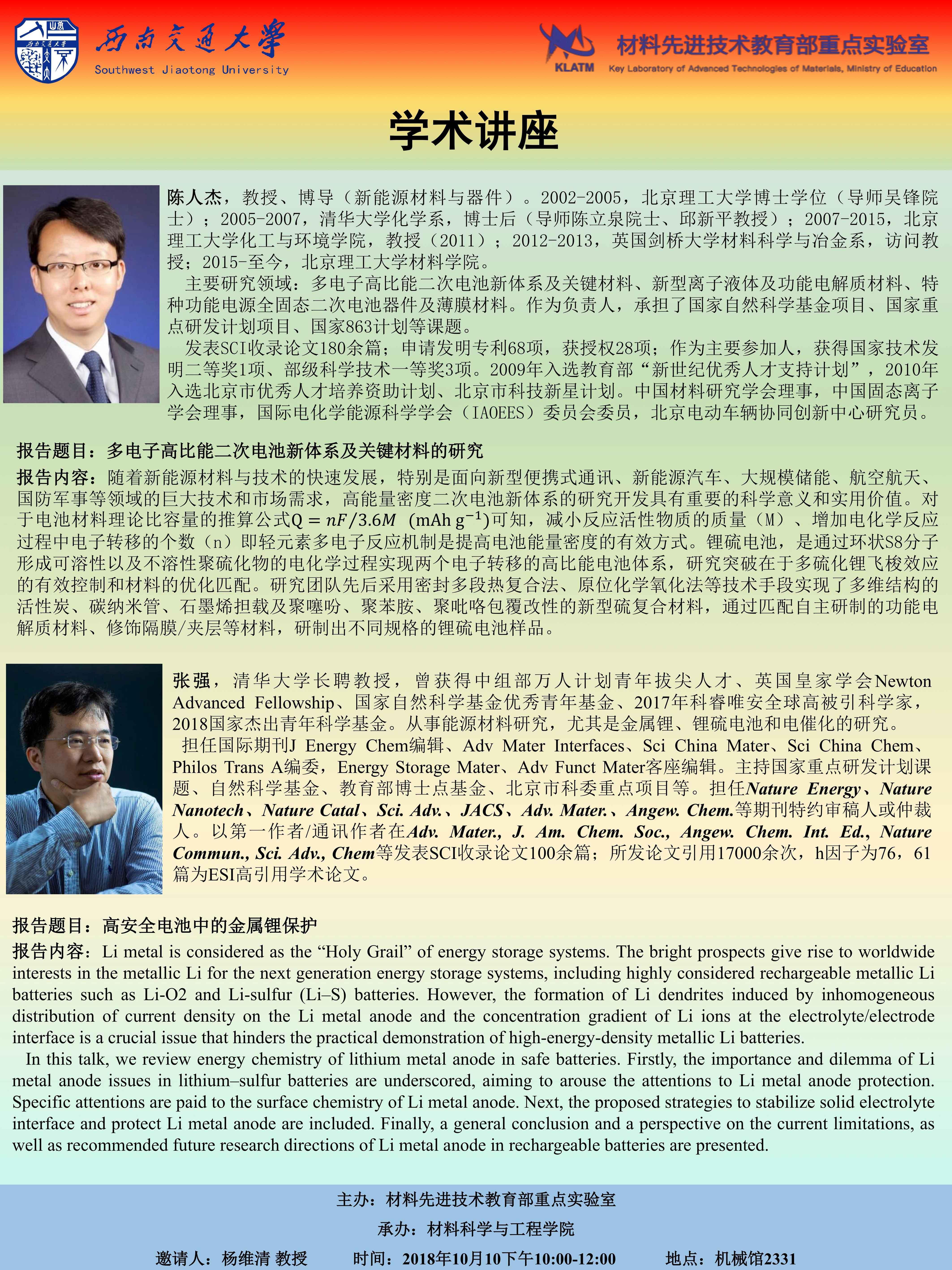 讲座标题:高性能与功能水凝胶材料与器件 讲座时间:2018年11月19日19:0...