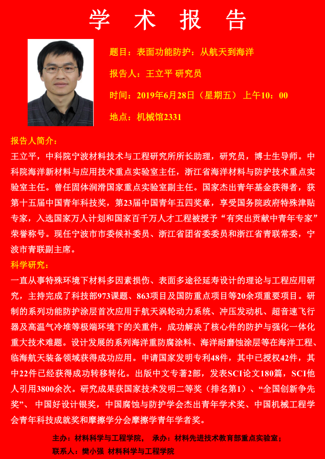 讲座地点:韦德官方网站九里校区机械馆2331讲座时间:2019年7月3日 下...